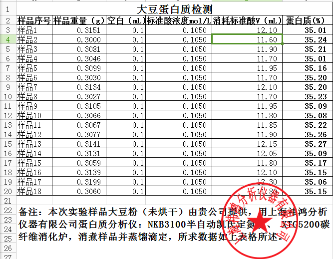 某大豆公司送來一批大豆樣品,根據客戶要求,我公司使用XTG5200真空碳纖維消化爐和NKB3100半自動定氮儀。