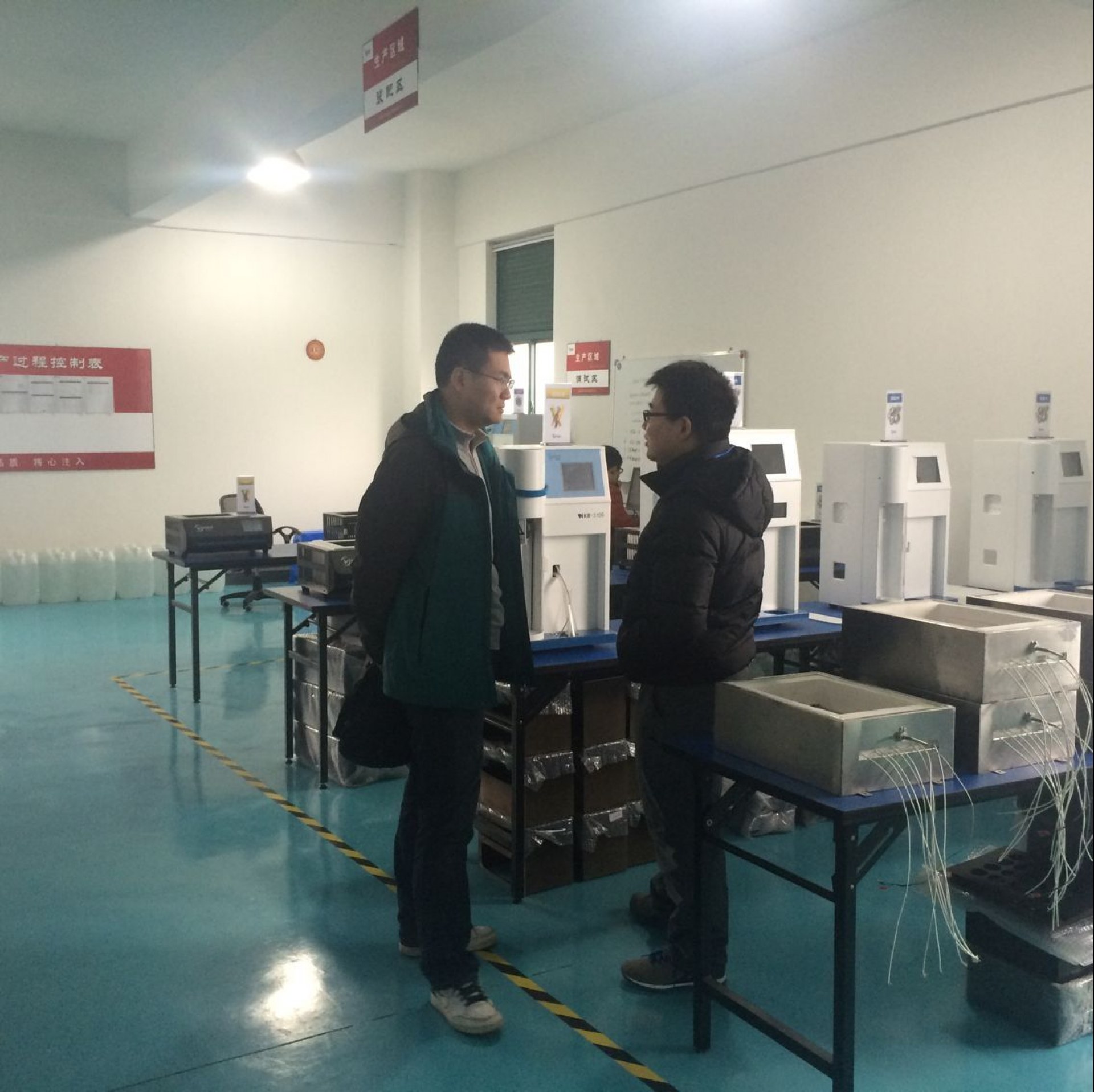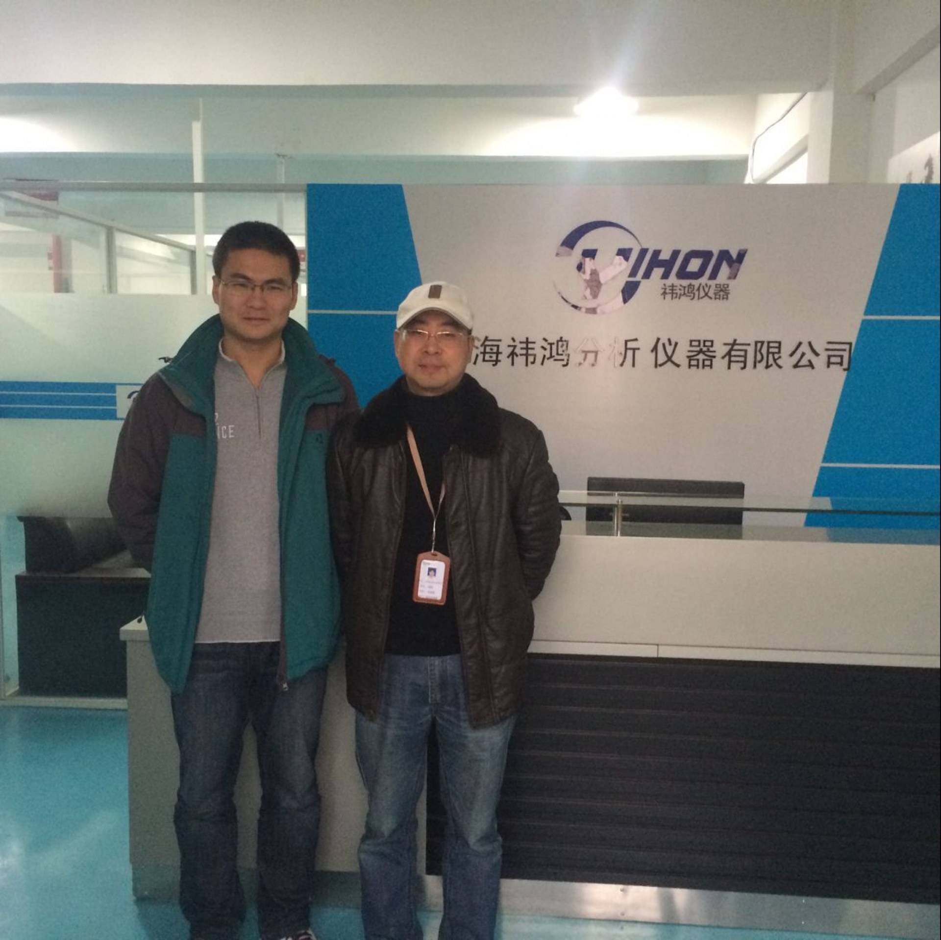 時(shí)老師參觀消解試驗(yàn) 老師參觀車間了解全自動(dòng)調(diào)試過(guò)程 胡總與時(shí)老師合影留念